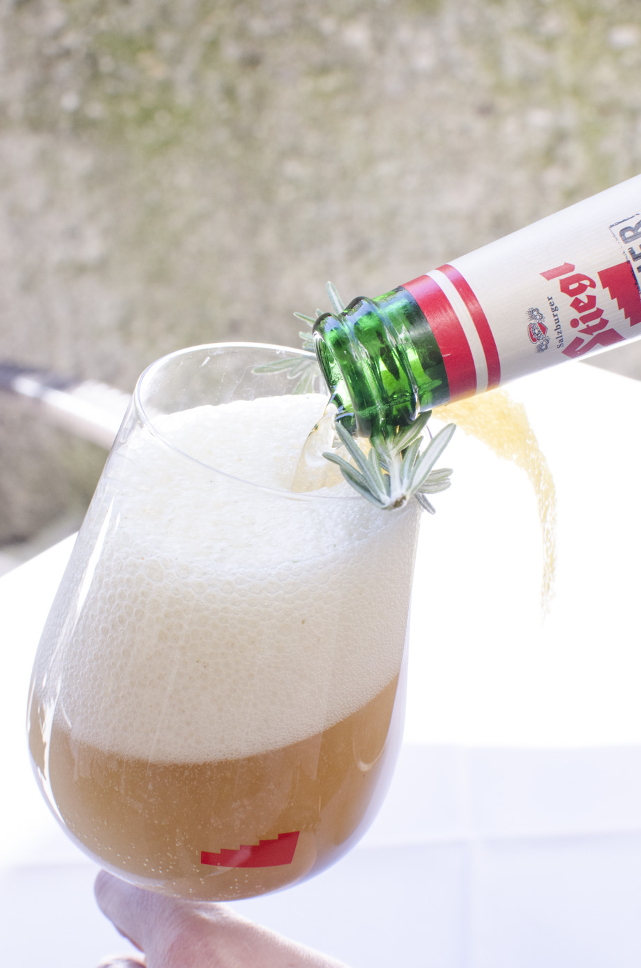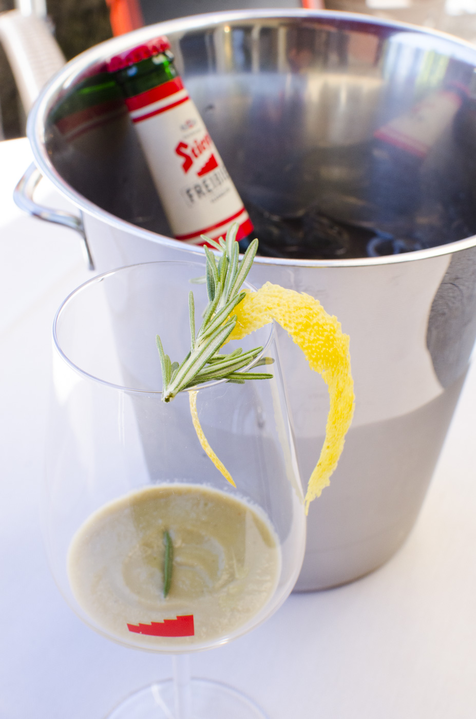 Eine wahrlich außergewöhnliche Kreation ist unser “Alkoholfreies Bier mit Auberginenmark”. Ein erfrischendes Getränk zum Grillen an heißen Sommertagen. Die leichte Schärfe, das Aroma der Kräuter und der feine Geschmack vom Stiegl “Freibier” ergeben einen euphorischen Genuss auf der Zunge. Viel Freude damit!