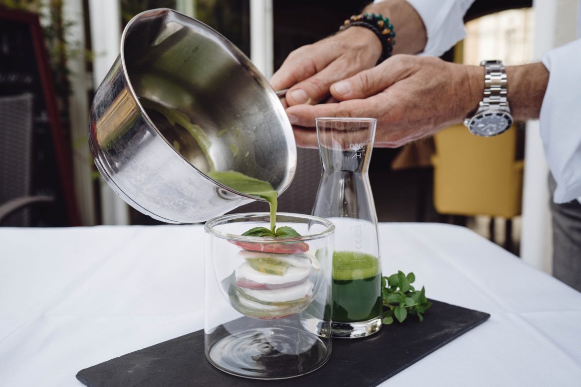 Klar, Caprese kennen wir alle und die meisten von uns lieben dieses Gericht aus Italien! Für den besonderen Moment sorgt bei diesem Rezept die Basilikumlimonade, die ins Glas eingegossen wird und für den Wow-Moment am Tisch sorgt!