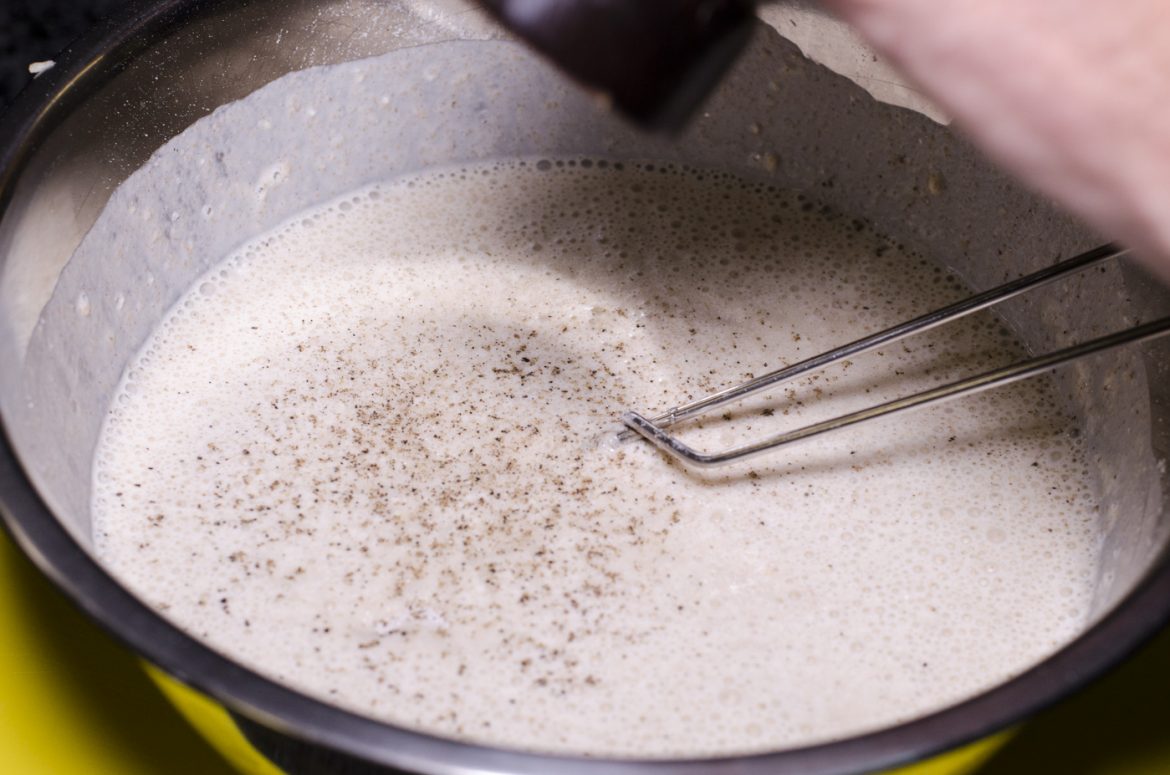 Die Zutaten für den Teig zu einer Masse verrühren und dünne Palatschinken in einer Pfanne ausbacken.