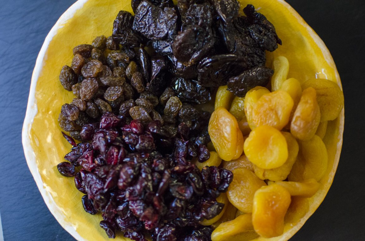 - 180g gemischtes Dörrobst (Cranberries, Marillen, Rosinen, Zwetschgen)
