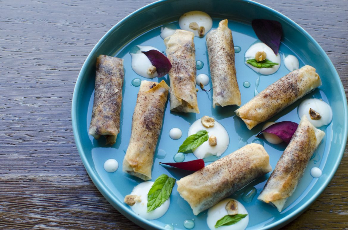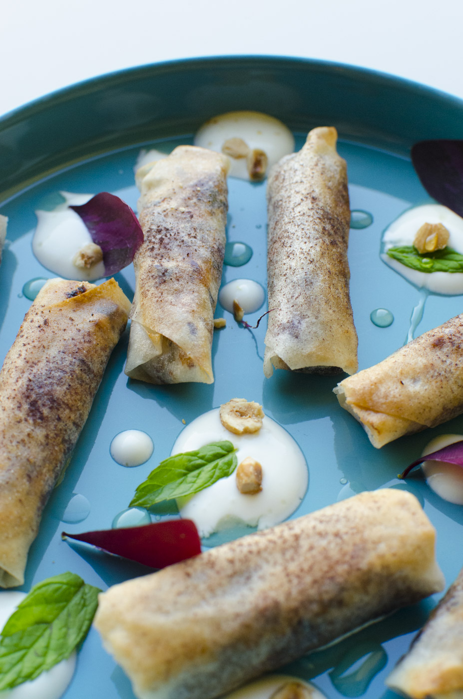 Wir alle kennen und lieben sie: Frühlingsrollen. Auf den ersten Blick könnte man meinen, bei diesen Röllchen handelt es sich um die chinesische Variante, doch das Gegenteil ist der Fall. Gefüllt wird das knusprig angebratene Reisblatt mit einer Mischung aus Dörrobst und Nüssen. Dazu gibt es erfrischenden Schafsjoghurt mit Minze verfeinert. Eine herrliche Kombination.