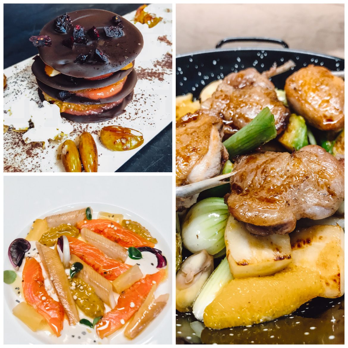 Brust und Haxerl von der Wachtel mit Orangen, Kerbelknolle, Maroni und Kohlsprosse