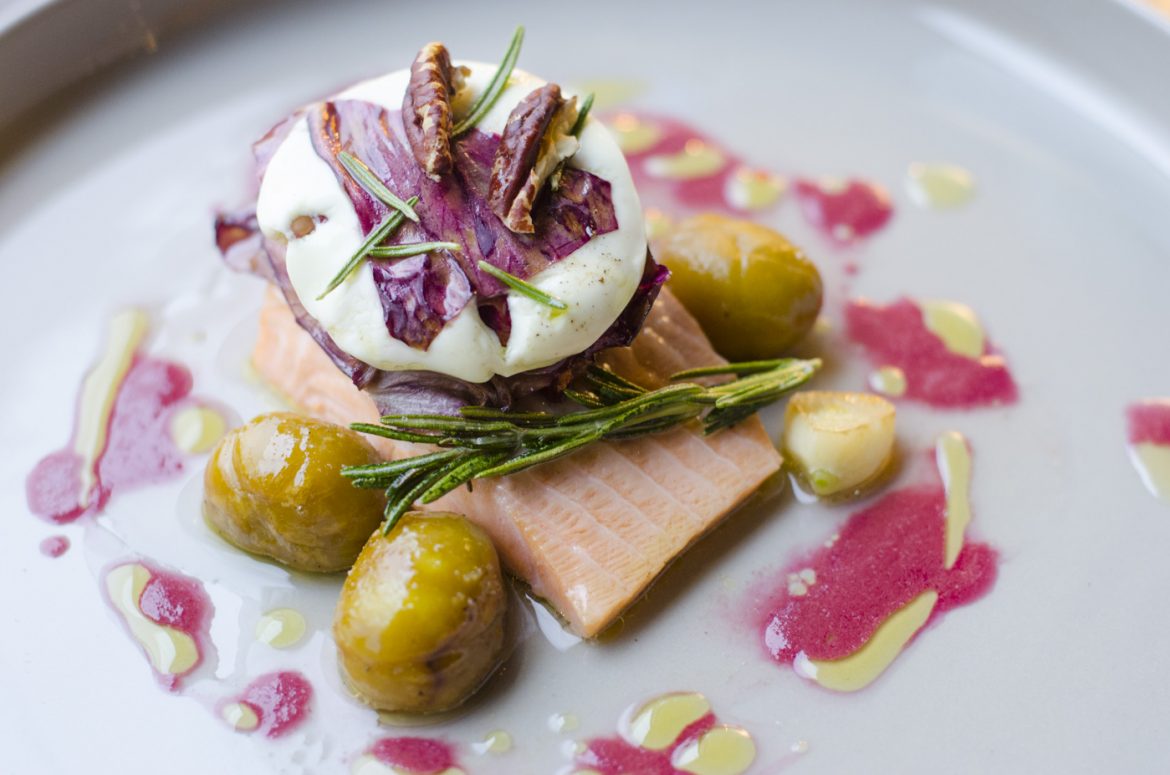 Die Kombination aus Ziegenkäse, Radicchio und Saibling wird dich faszinieren, denn sie ist selbstbewusst und trotzdem sanft. Ein Erlebnis für den Gaumen. Viel Vergnügen!