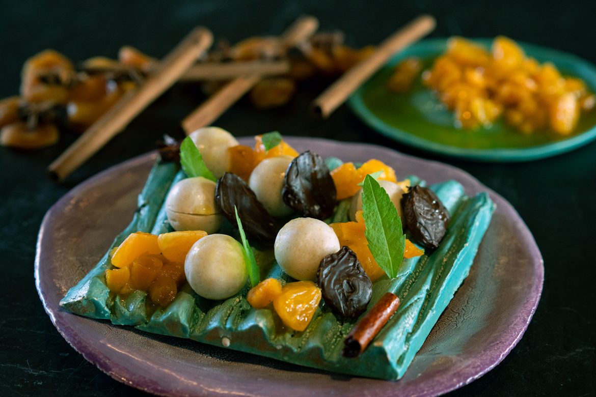Dörrmarillen und Mandarinen Ragout