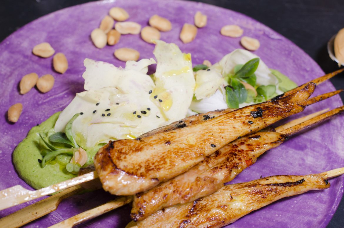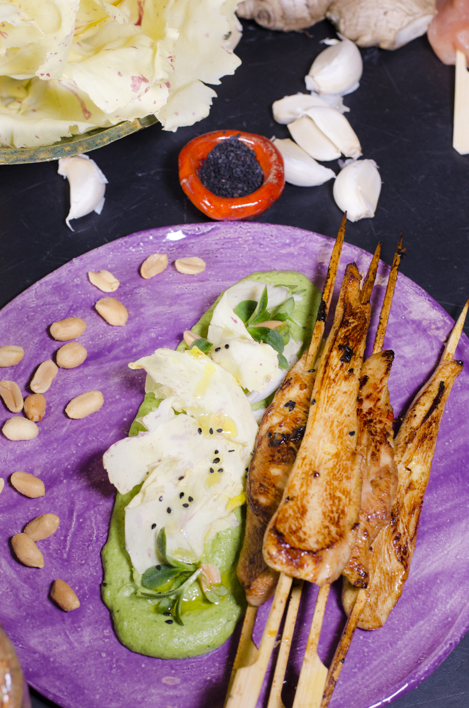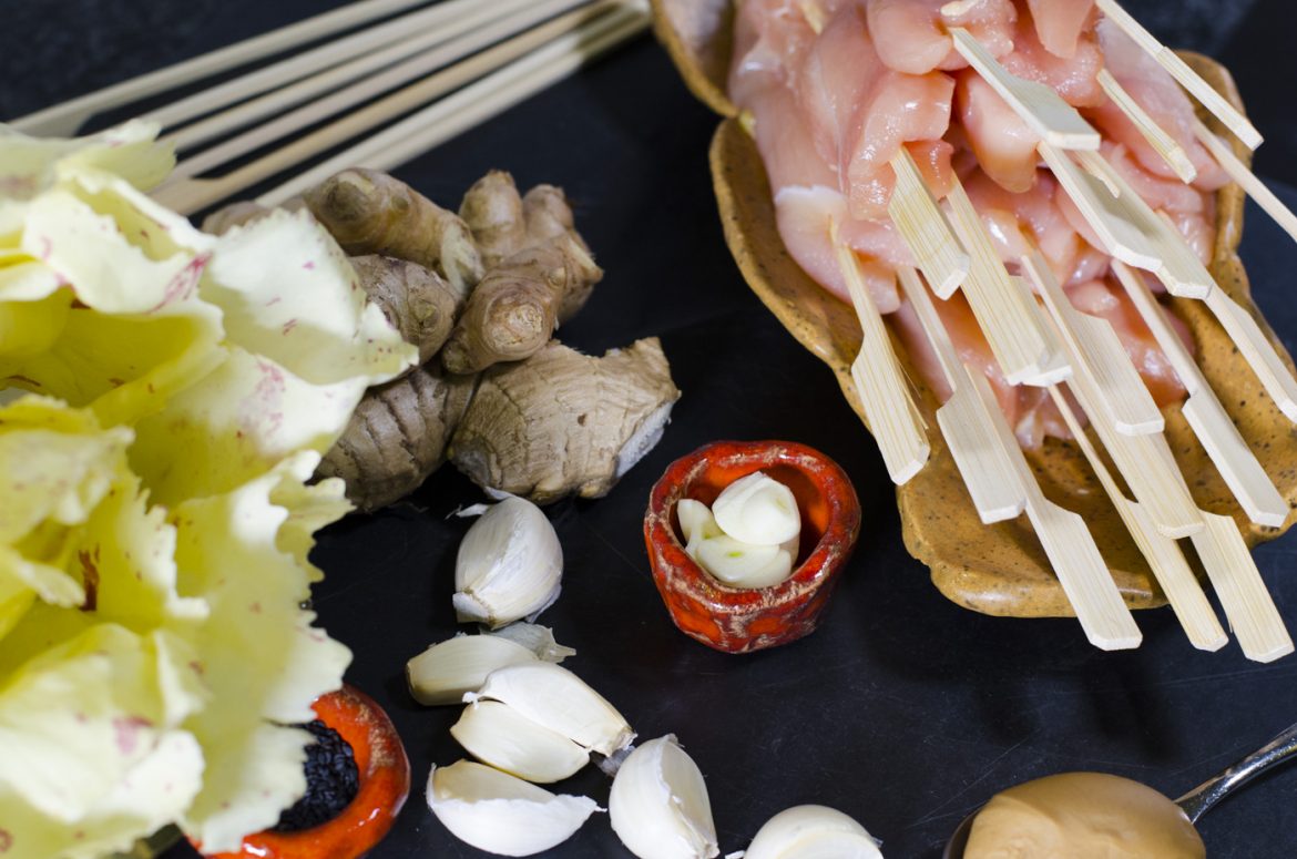Die Hühnerspieße mit Erdnuss-Endivien-Paste schmecken nach Frühling, Tatendrang und fernen Welten. Bei Geflügel sollte man besonders auf die Herkunft achten, denn die Massentierhaltungen sind hier sehr bedenklich. Bei Fleisch gilt – so wie bei vielem im Leben – lieber Qualität anstatt Quantität.