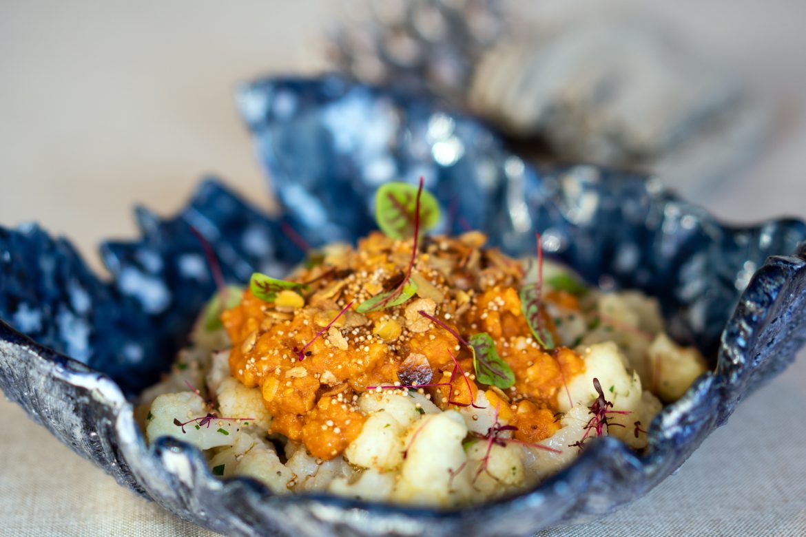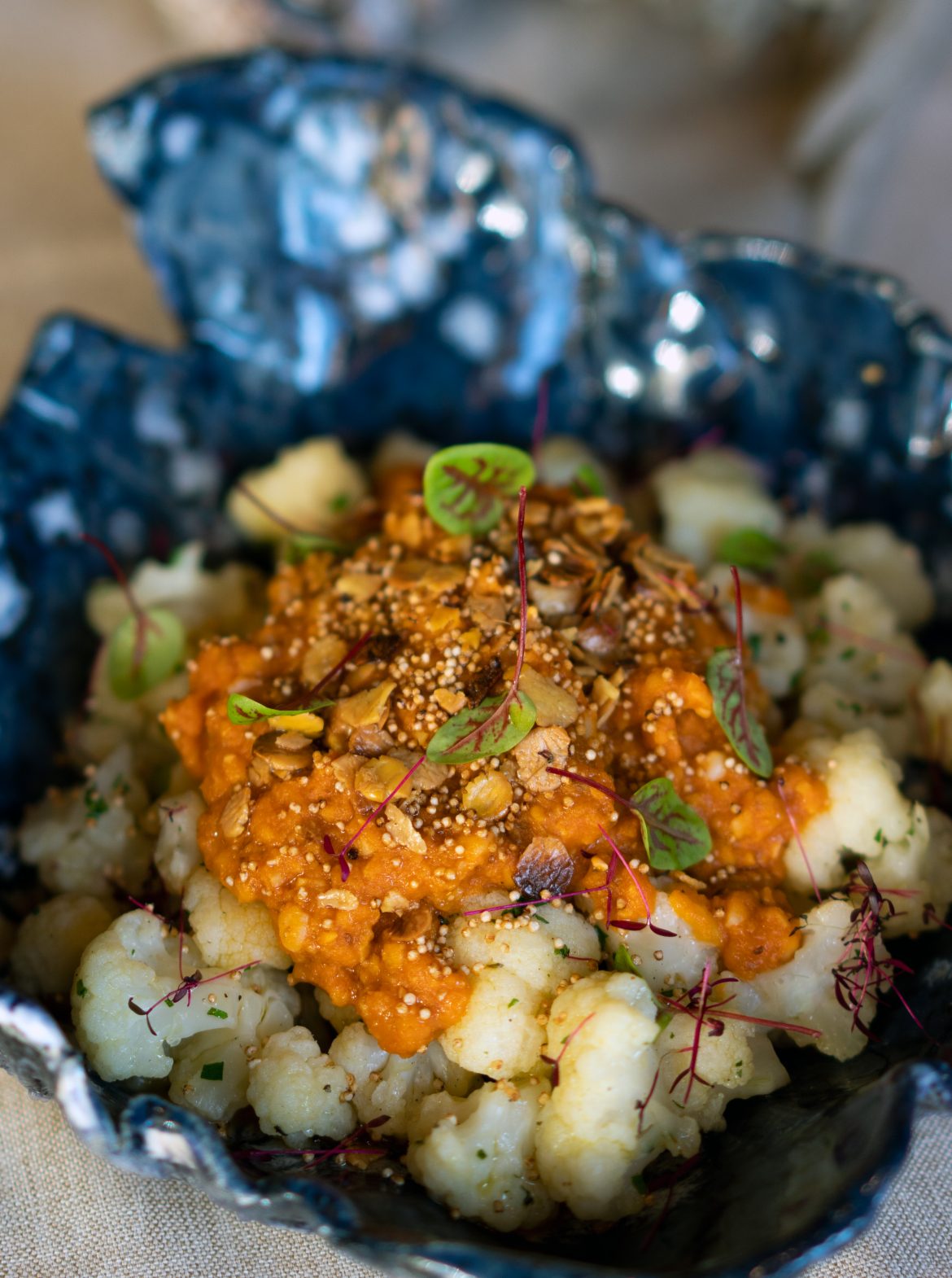 Karfiol in kleine Röschen zerteilen und in Salzwasser kochen. Vor dem Anrichten abseihen und zusätzlich noch in Olivenöl anschwitzen.