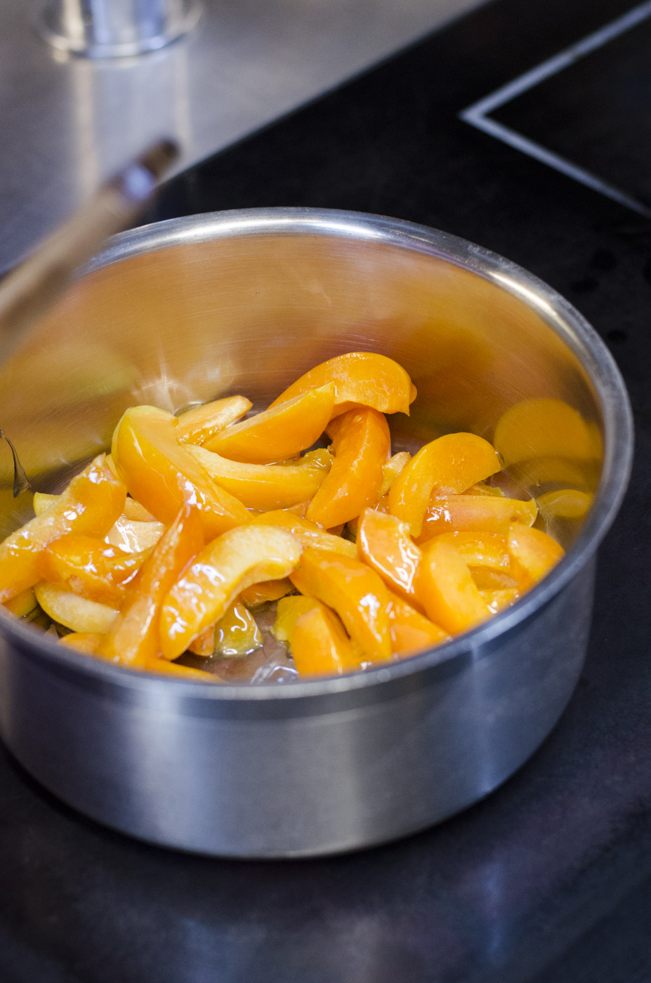 Für die Marmelade die geschälten, entkernten und gewürfelten Tomaten gemeinsam mit den entsteinten und gewürfelten Marillen in einen Topf geben und mit Agavendicksaft, Zimtrinde (nachher wieder rausnehmen), Kardamom, Curry, Thymian und Limettensaft bei schwacher Hitze einkochen, bis die Masse sämig wird.