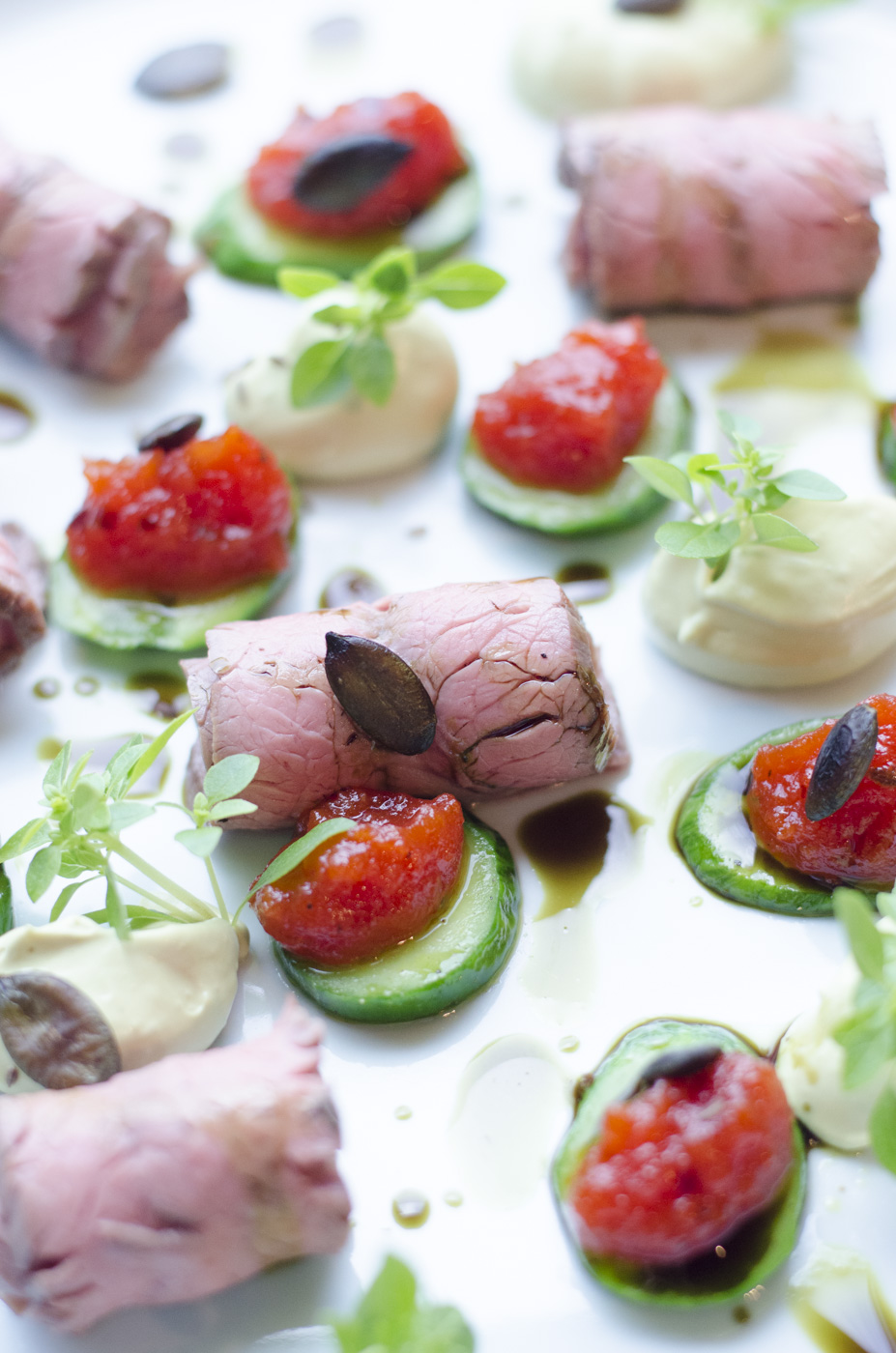 Feines Roastbeef mit Kernöl-Whip und Tomatenmarmelade – eine harmonische Komposition, die sich sowohl als Vorspeise, als auch auch als Hauptspeise super eignet. Das Kernöl gibt dem ganzen dann noch einen besonderen Kick! Viel Vergnügen!