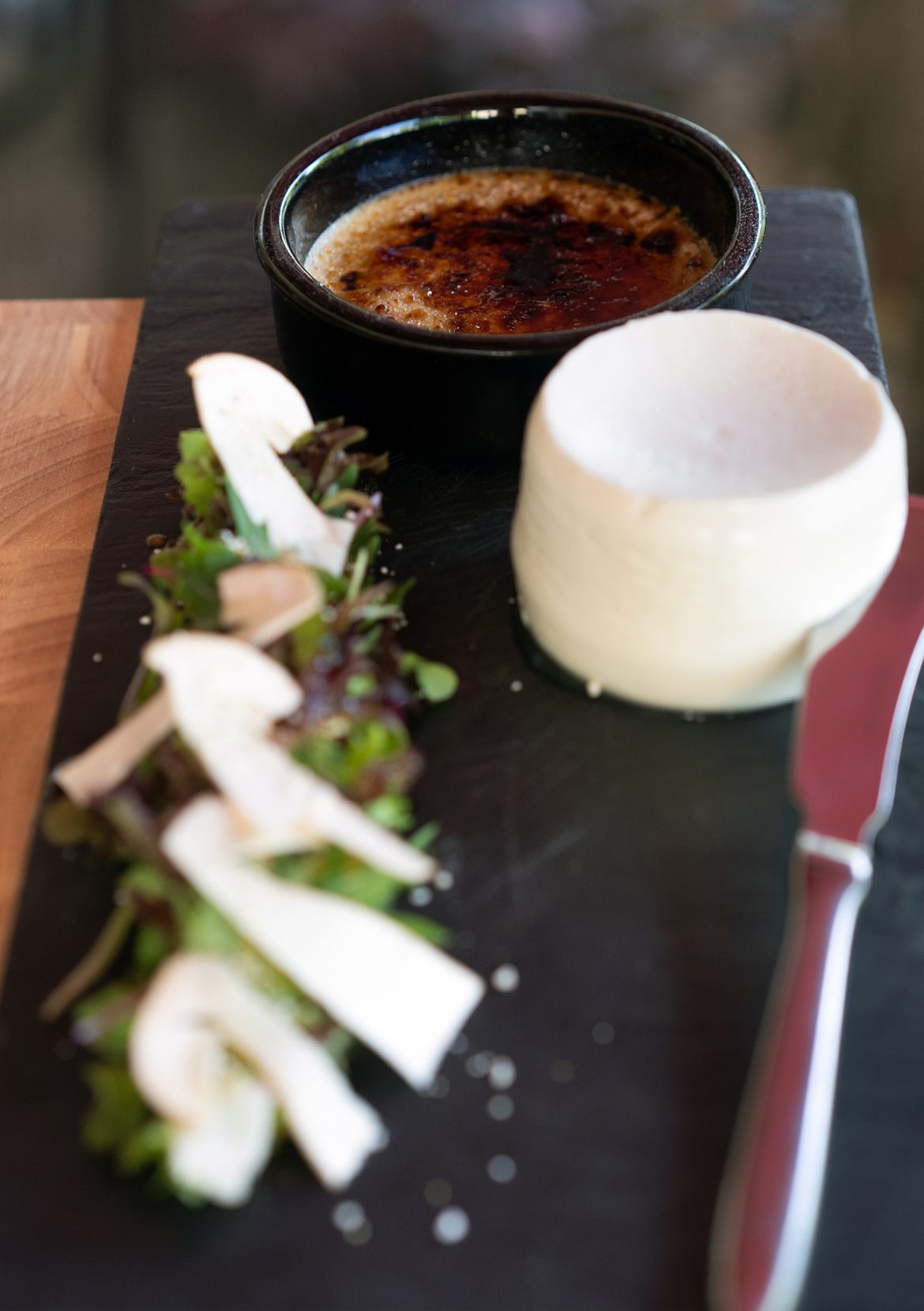 Fingerdick in feuerfeste Schälchen einfüllen und im Wasserbad (80 Grad) bei Heißluft pochieren (115 Grad für 15 Minuten).