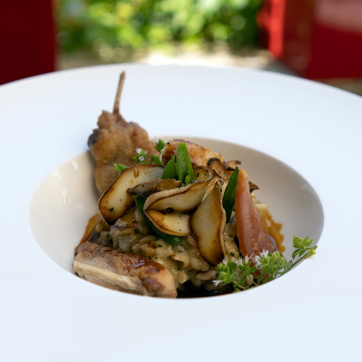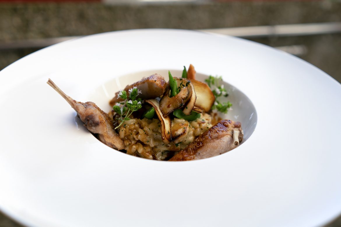 Zusätzlich einen Steinpilz feinblättrig schneiden und über das Risotto als Topping geben. Zum Schluss die fein gehackte Petersilie dazu.