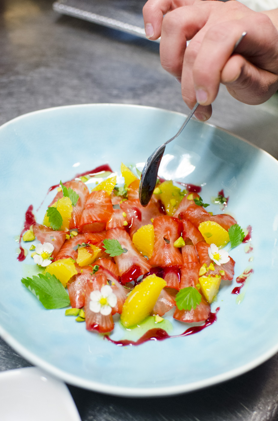 - Erdbeeren und Orangen zum Garnieren