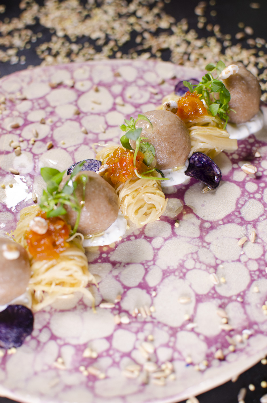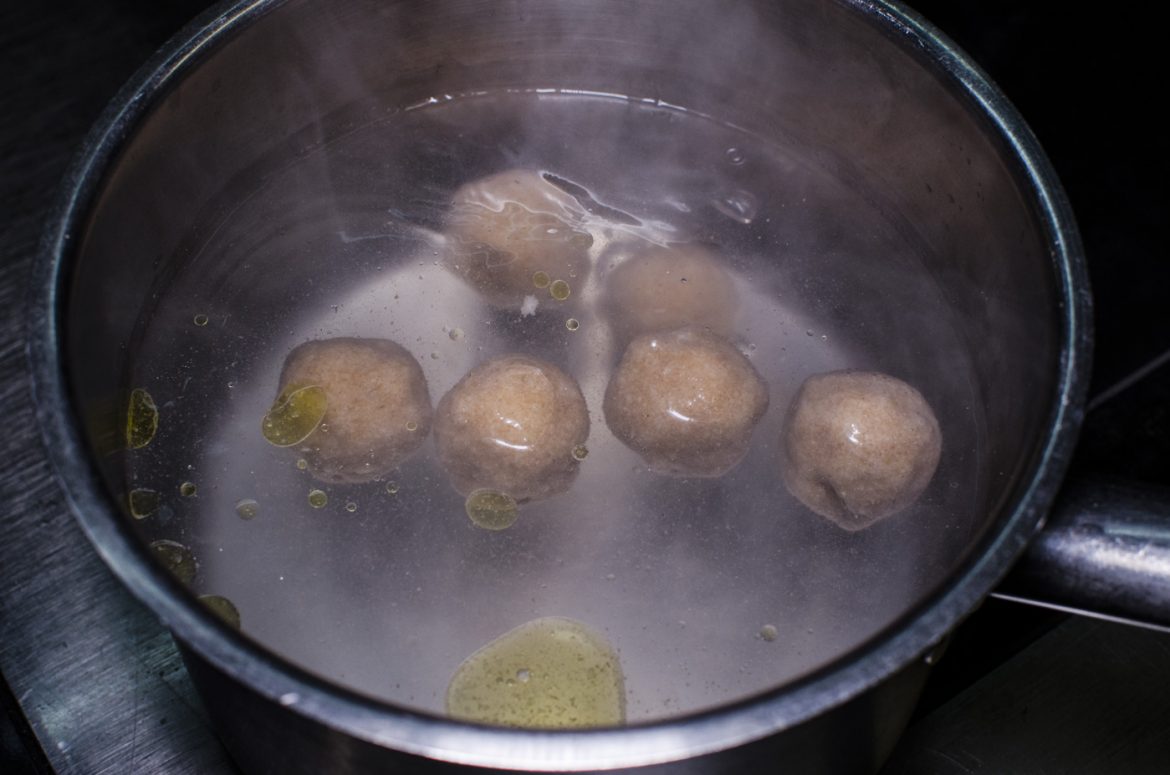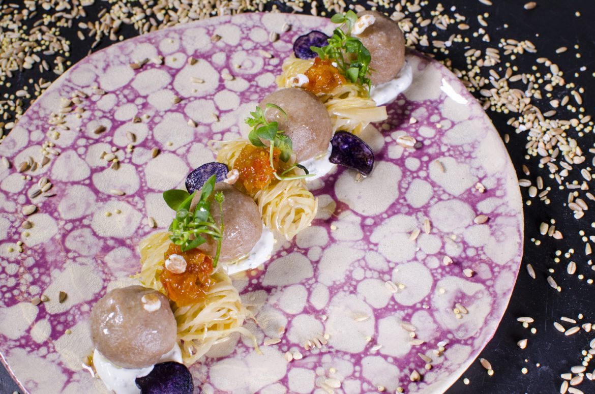 Dann die Fülle zu Kugeln formen und im Teig einpacken. Jetzt die Knödel 5 Minuten lang im Topf köcheln lassen. Für das Kraut alle Zutaten der Marinade zusammengeben und mit dem Kraut kurz verkochen. Alle Komponenten am Teller anrichten und genießen 🙂