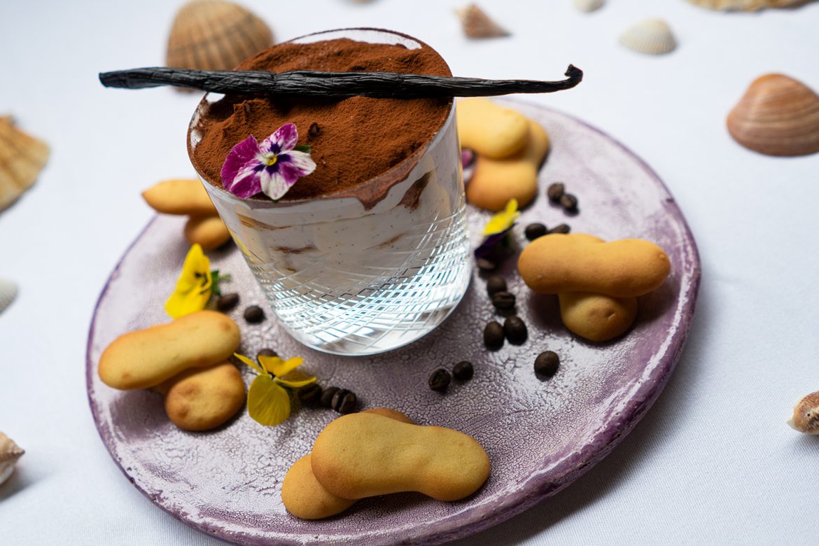 Für mindestens 2 Stunden in den Kühlschrank stellen. Vor dem Servieren mit Kakao bestreuen.